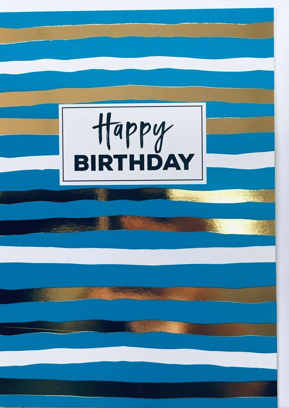 Card Rectangle | Happy Birthday Gold Stripes Blue