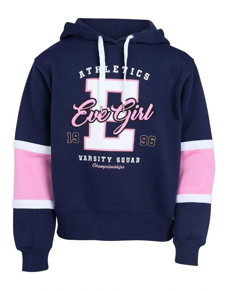 The Champion Hoodie by Eve Girl is a must-have for this autumn. The hoodie features an awesome athletic front print with panelled sleeves creating a unique and fun update to a classic hoodie style. The thick fabric and relaxed fit make the hoodie a perfect addition to the wardrobe for a classic but stylish everyday piece.