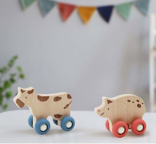 Designed with delightful cow and pig characters, this set is beautifully boxed and features lovely laser textured engraved details on the body, adding an extra touch of charm to these delightful toys. Ideal for eco conscious families seeking quality and fun, this set ensures every playtime moment is both enriching and enjoyable.