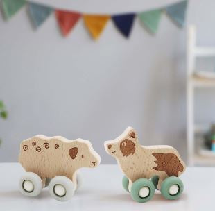 Discover the Kaper Kidz Eco Play Farm Animal Set, where sustainability meets playtime joy. Crafted from durable beech wood and featuring vibrant silicone wheels, each piece in this charming two piece set promises smooth and engaging play for toddlers and young children alike.