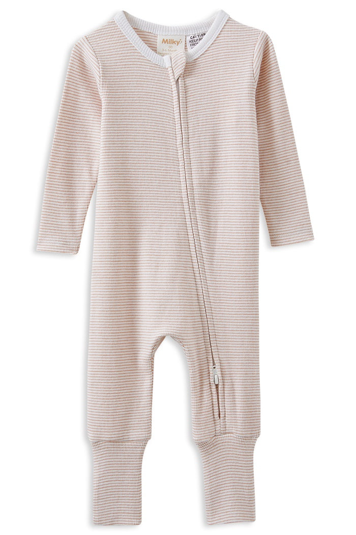 Milky Zip Romper | Mocha Stripe